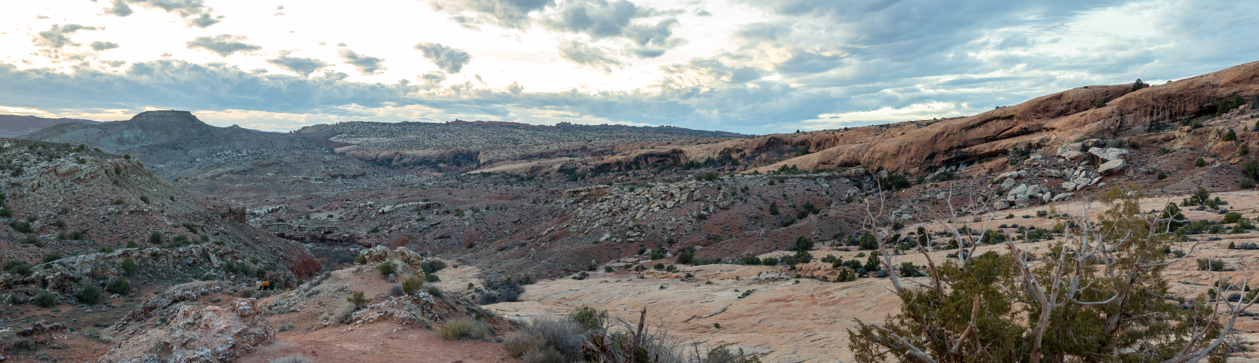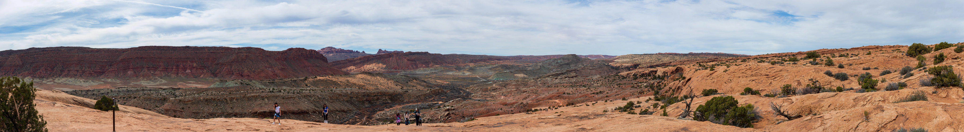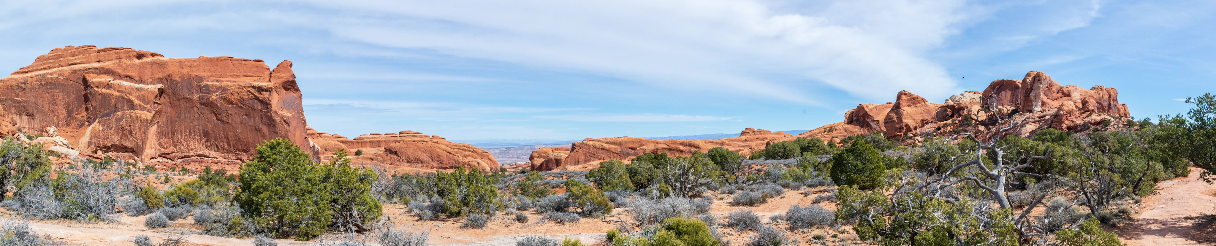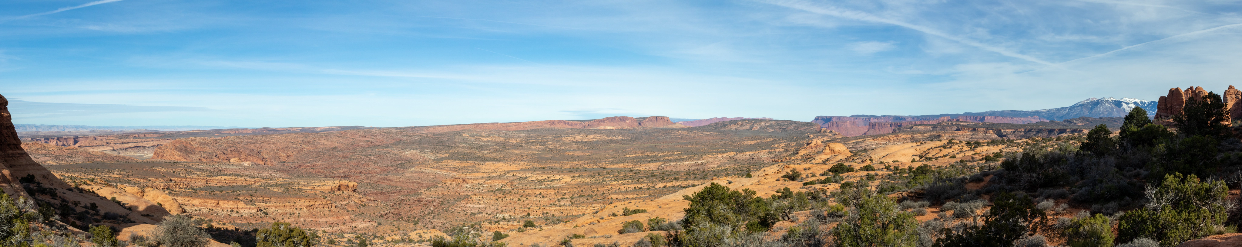 These photos were taken on the lip of a valley that was formed by the slow erosion of a salt dome that formed underneath the land that today makes up Arches National Park. The collapse of this salt dome is one of the major factors that led to the exposure of the soft sand stone, which eroded into the arches that gives this park its name.