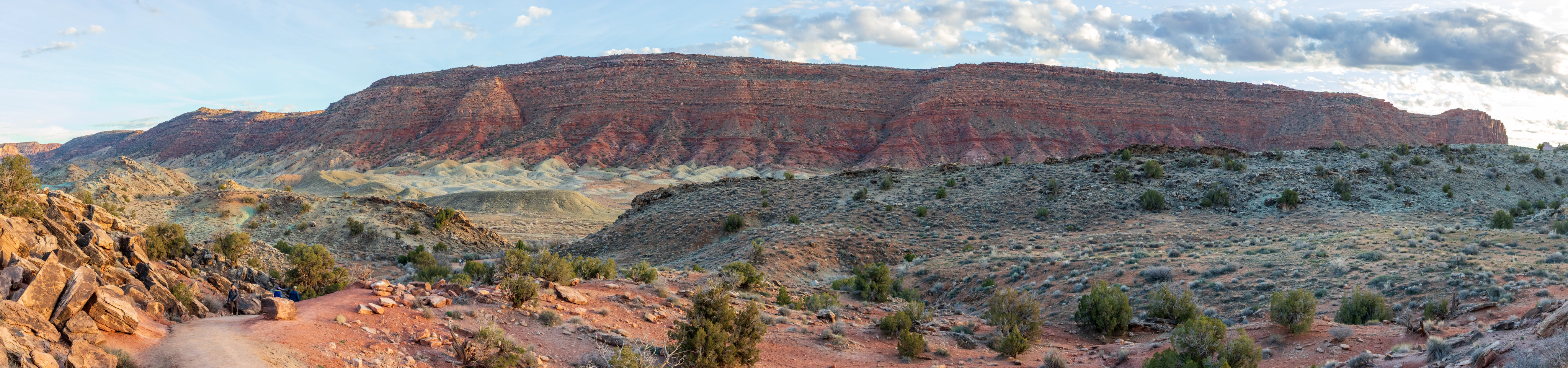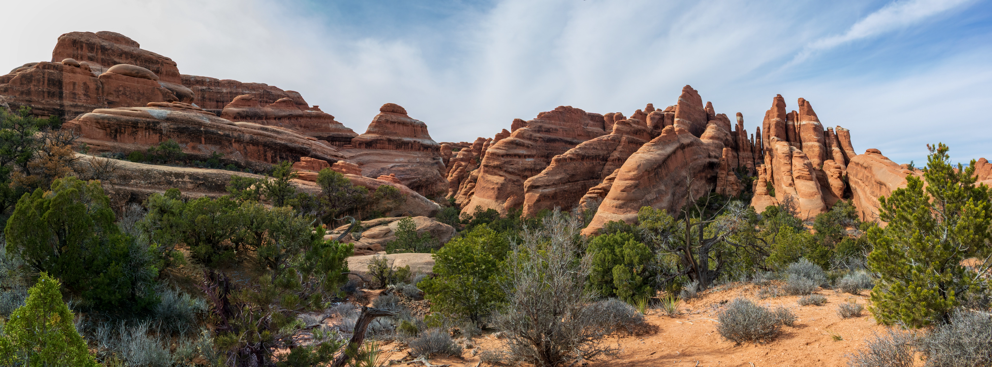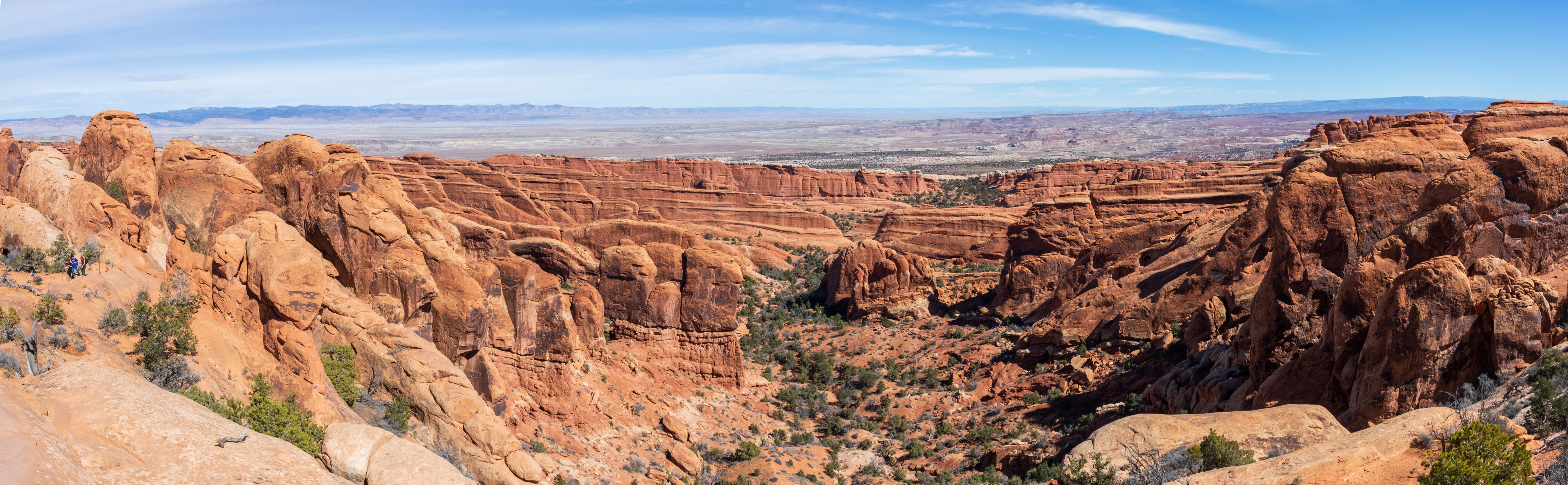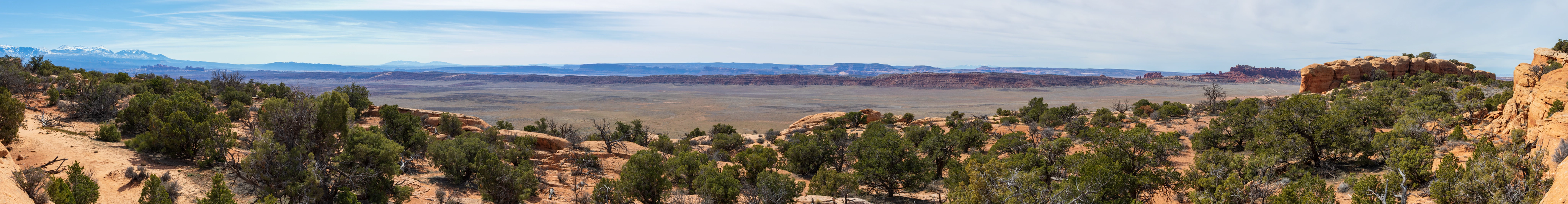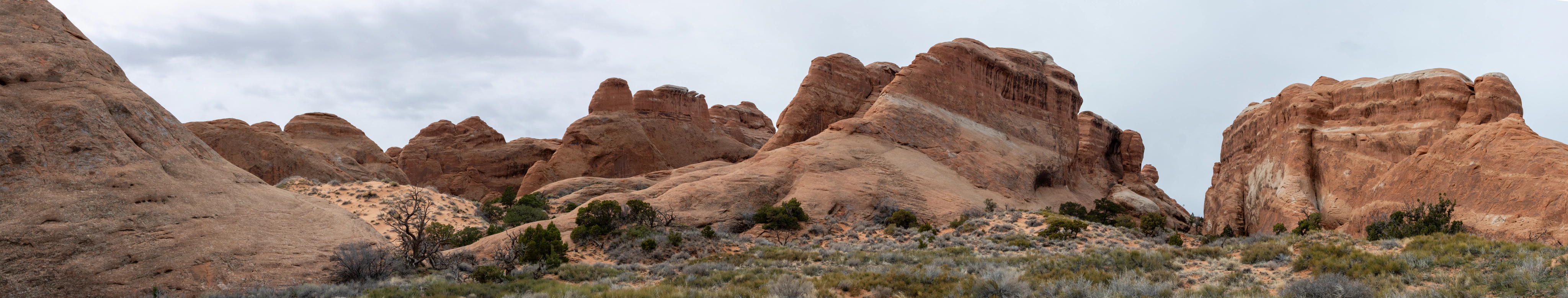 These photos were taken on the lip of a valley that was formed by the slow erosion of a salt dome that formed underneath the land that today makes up Arches National Park. The collapse of this salt dome is one of the major factors that led to the exposure of the soft sand stone, which eroded into the arches that gives this park its name.