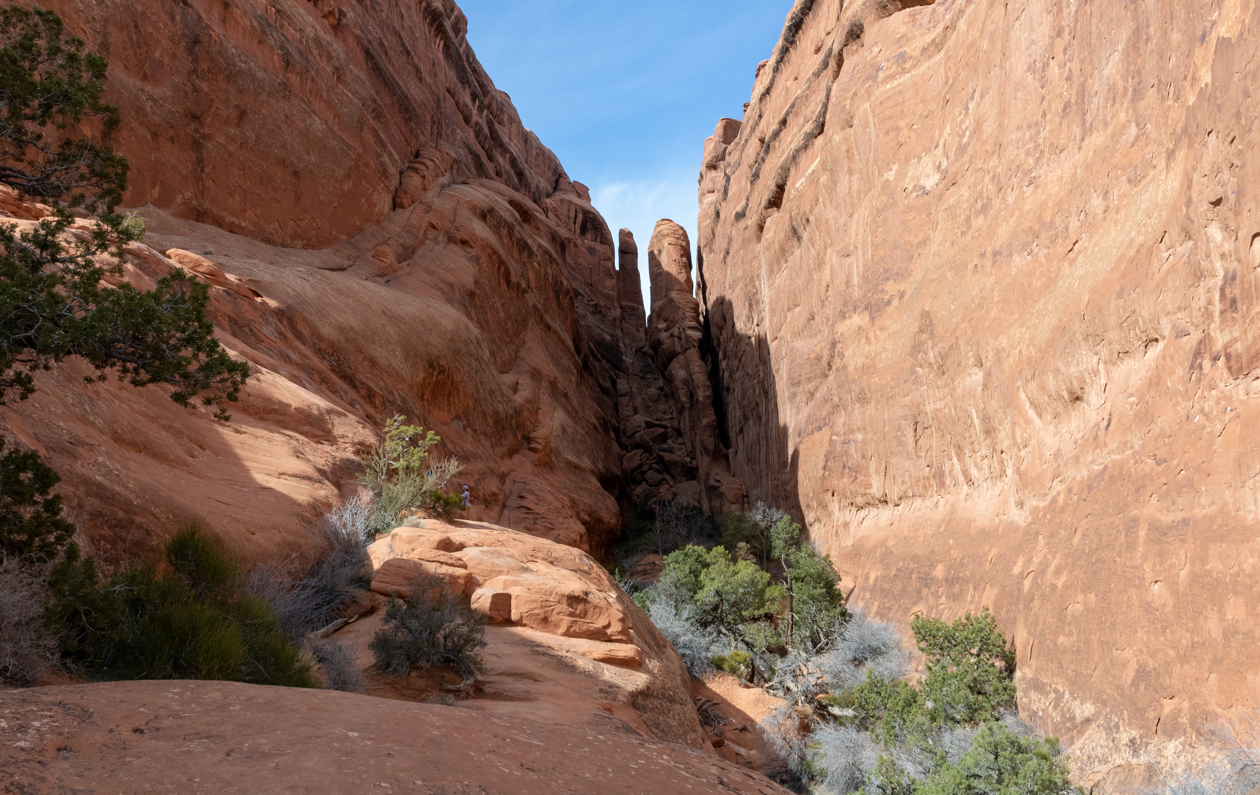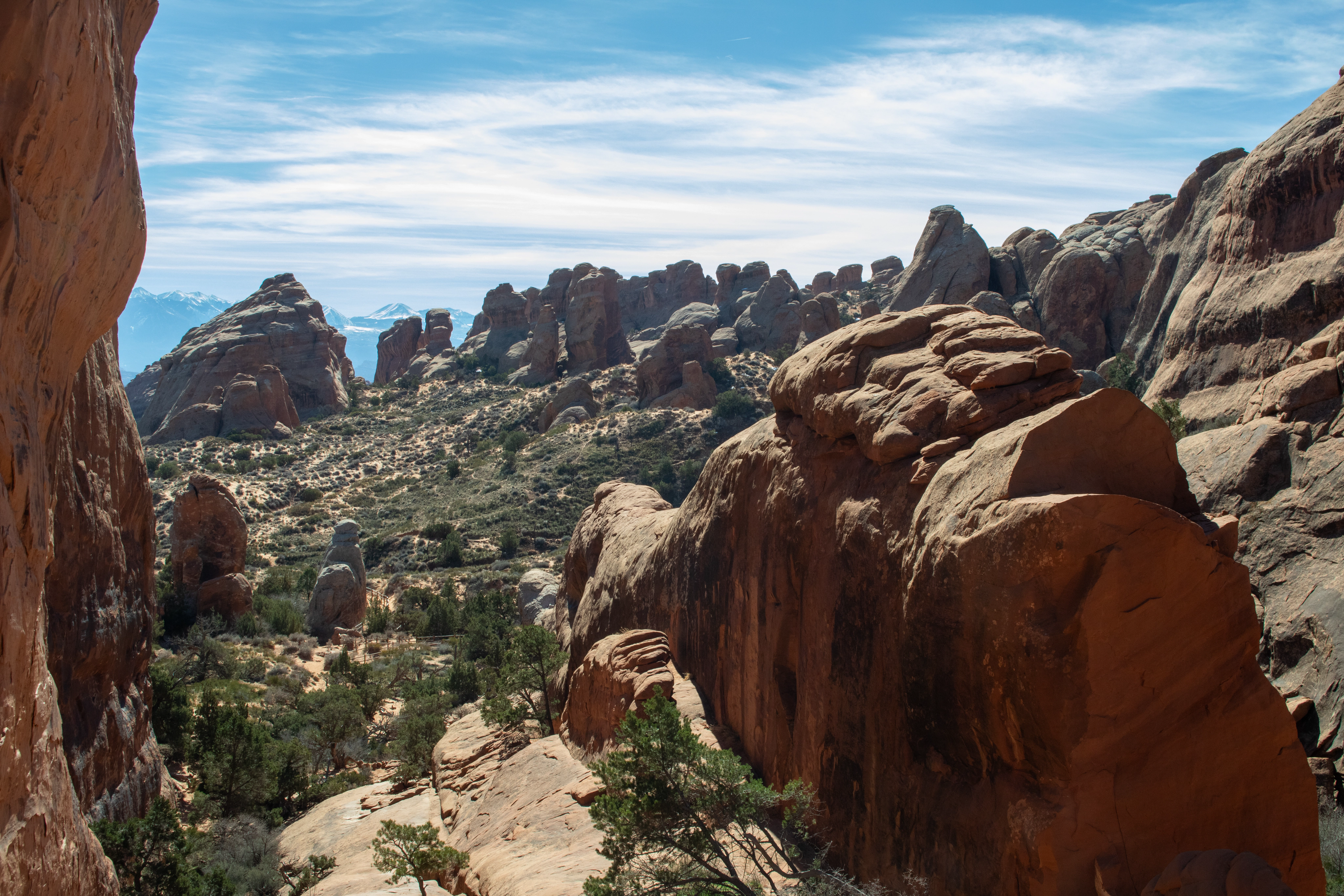 Devil’s Garden is one of the most breathtaking parts of the entire park. We took every spur trail along its entire length stopping at places such as Navajo and Private arch. We got to look back down onto the park through Partition Arch and take in the majesty of the Salt Dome Valley at feet of Dark Angel.